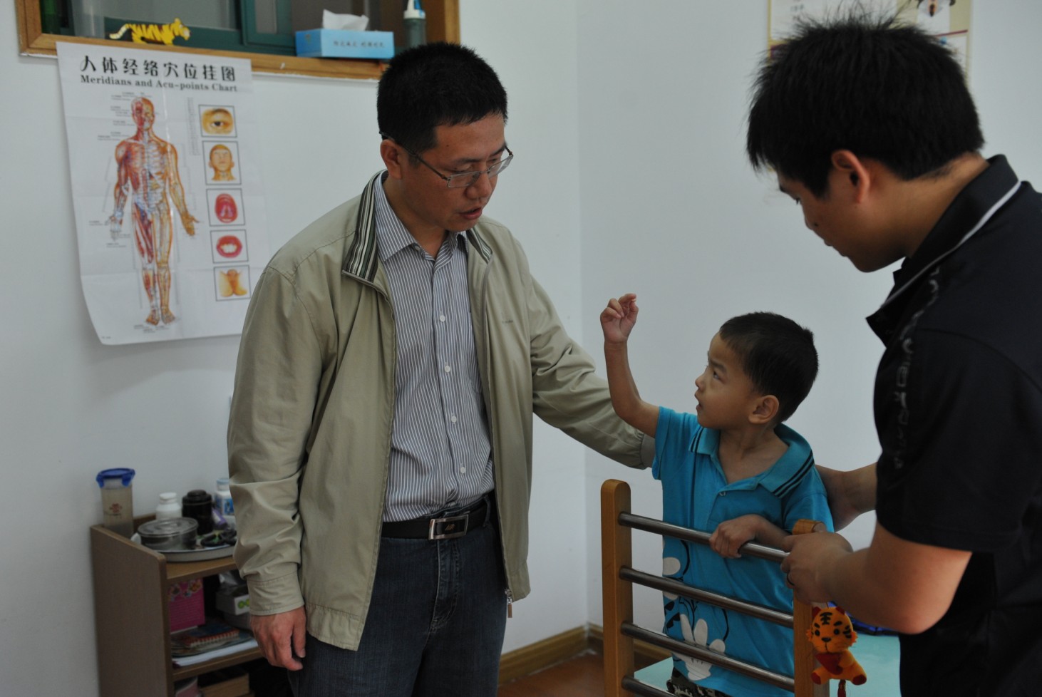 在福利院院長的陪同下,姚紹武副總經(jīng)理參觀了福利院內(nèi)的各項建設(shè)、設(shè)施,逐一查看每一個房間,并詳細(xì)詢問孩子收養(yǎng)和康復(fù)情況。當(dāng)?shù)弥簧倌X癱兒童經(jīng)過訓(xùn)練能夠生活自理甚至獨立行走時,他露出了欣慰的笑容,摸著孩子們的頭,鼓勵他們要自信自立??吹胶⒆觽兌嫉玫饺嬲樟蠒r,姚紹武深情地說,這里就是孩子們的家,看到他們天真快樂的樣子我真替他們感到高興。